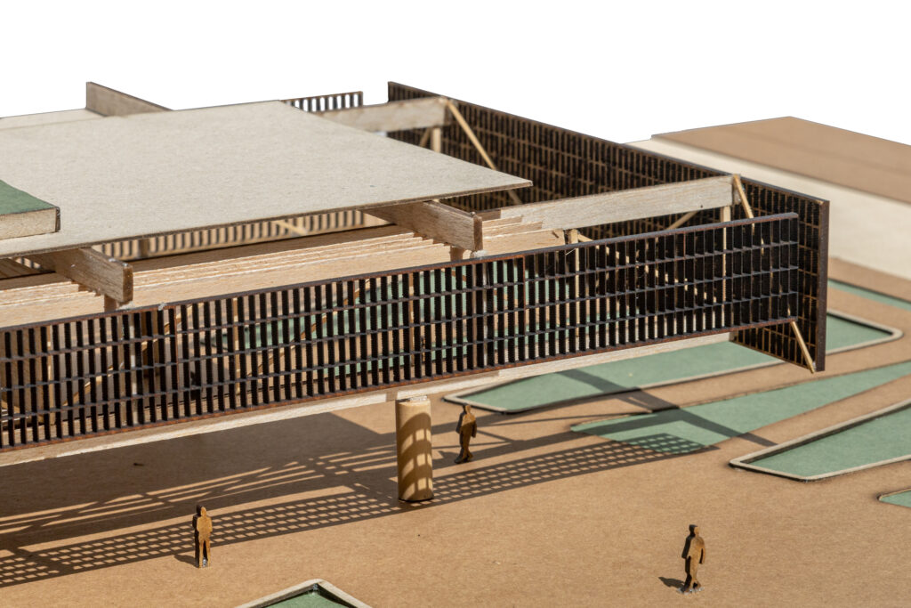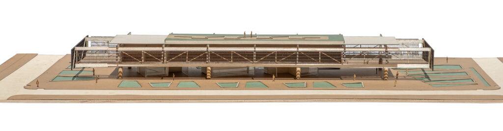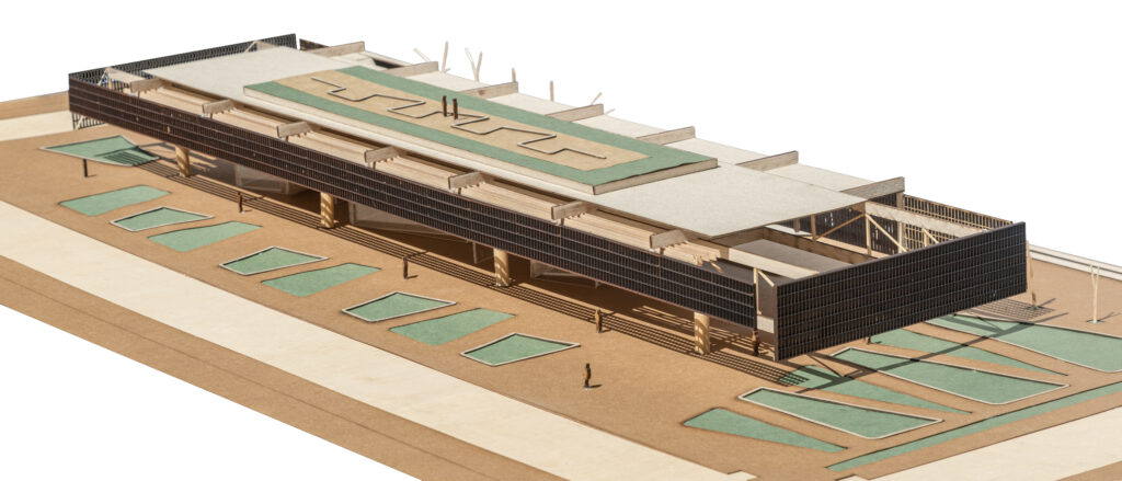 La resolución estructural, mediante un sistema de vigas superpuestas, refleja la sinceridad constructiva y material que pretende expresar el proyecto. Esta “transparencia” estructural permitió que el proyecto construya una secuencia de espacios según su jerarquía funcional.