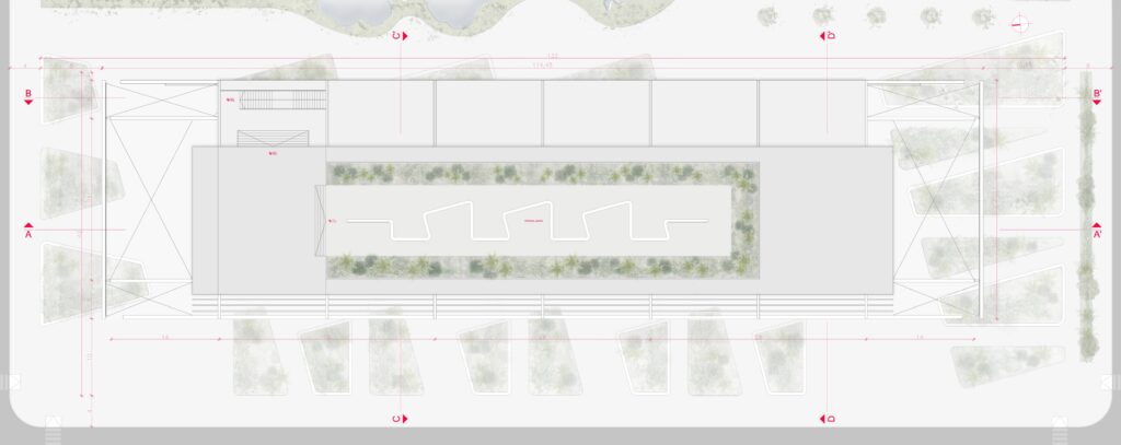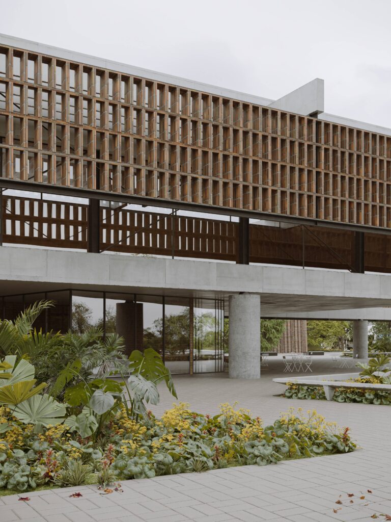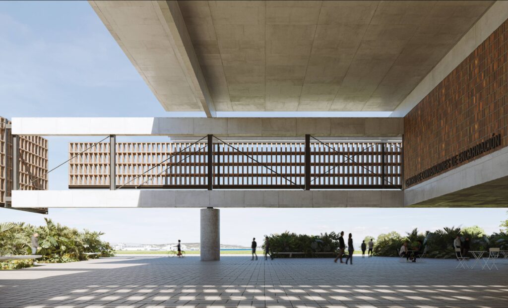 La implantación, como primer hecho arquitectónico, refleja la voluntad del proyecto de liberar la planta baja para construir un espacio público permeable, accesible y protegido. La decisión de desprender el volumen principal del proyecto y ceder todo ese espacio a la ciudad y el ciudadano es una estrategia conocida que ha demostrado ser un gesto apropiado y generoso en la construcción de una ciudad amable con el peatón. Existen varios ejemplos construidos en ciudades latinoamericanas que utilizan este recurso para consolidar un nuevo espacio urbano y convertirse en el símbolo arquitectónico del lugar, como lo hizo el MASP de Lina en São Paulo o el MAM de Reidy en Rio de Janeiro.