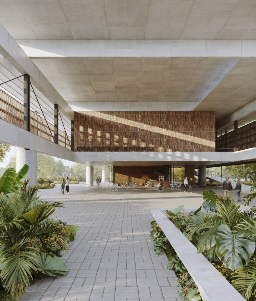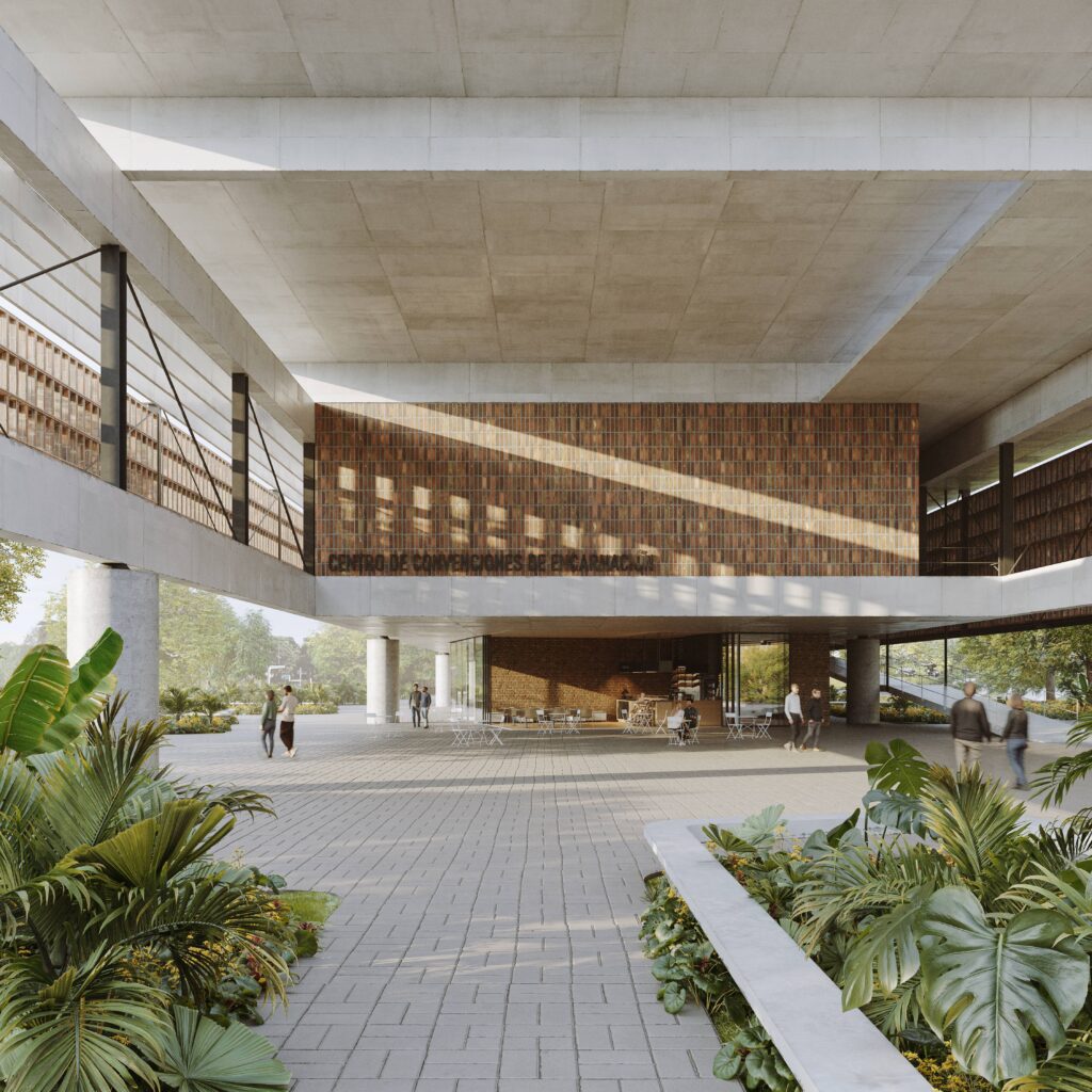 La rampa funciona como el elemento principal de transición entre la gran plaza pública y el Centro de Convenciones, proponiendo la accesibilidad como una de las prioridades del proyecto. Atravesando el espacio de triple y doble altura se llega a la planta alta, donde se ubica el Centro de Convenciones y sus programas de apoyo.