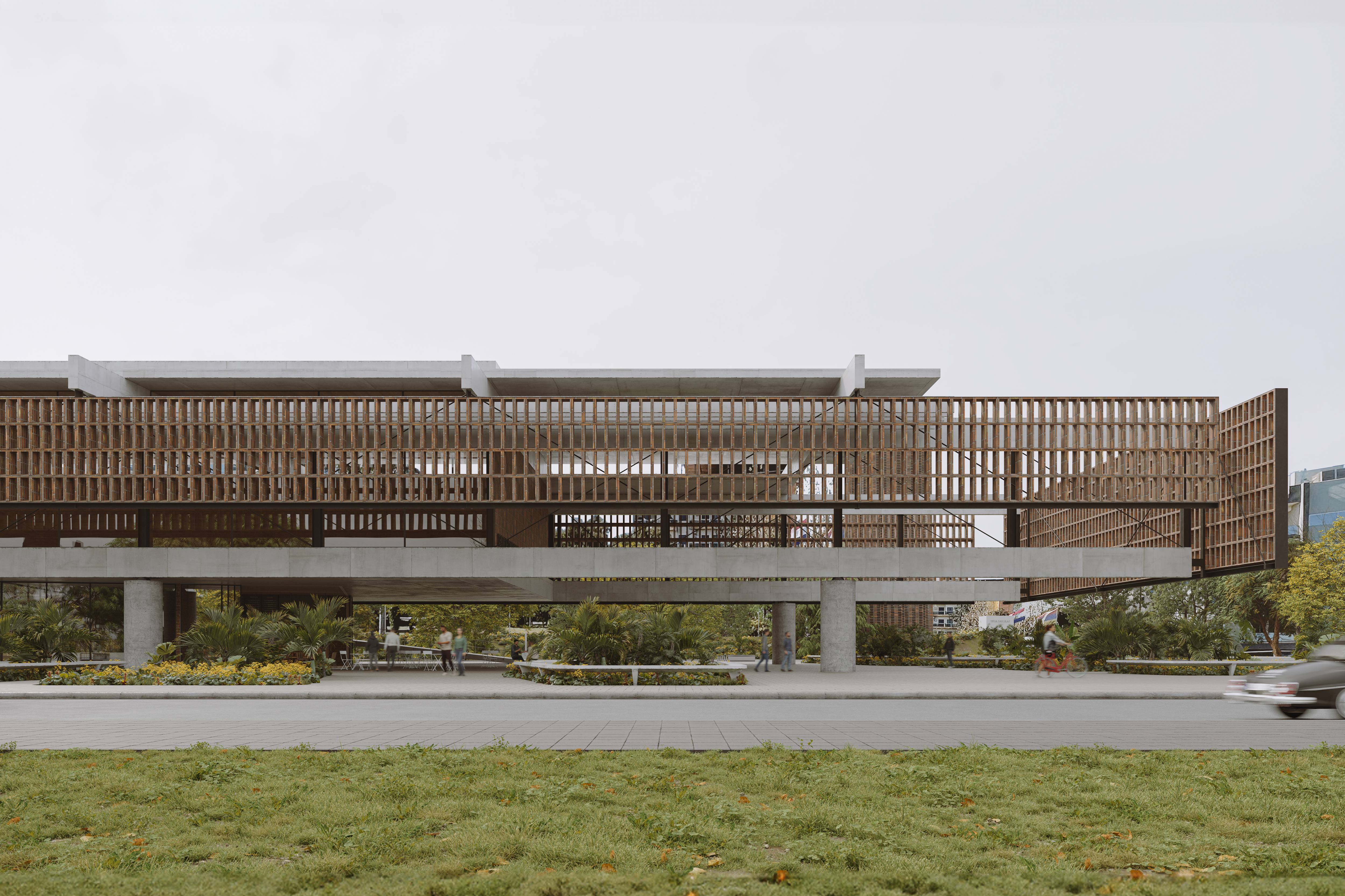 La implantación, como primer hecho arquitectónico, refleja la voluntad del proyecto de liberar la planta baja para construir un espacio público permeable, accesible y protegido. La decisión de desprender el volumen principal del proyecto y ceder todo ese espacio a la ciudad y el ciudadano es una estrategia conocida que ha demostrado ser un gesto apropiado y generoso en la construcción de una ciudad amable con el peatón. Existen varios ejemplos construidos en ciudades latinoamericanas que utilizan este recurso para consolidar un nuevo espacio urbano y convertirse en el símbolo arquitectónico del lugar, como lo hizo el MASP de Lina en São Paulo o el MAM de Reidy en Rio de Janeiro.